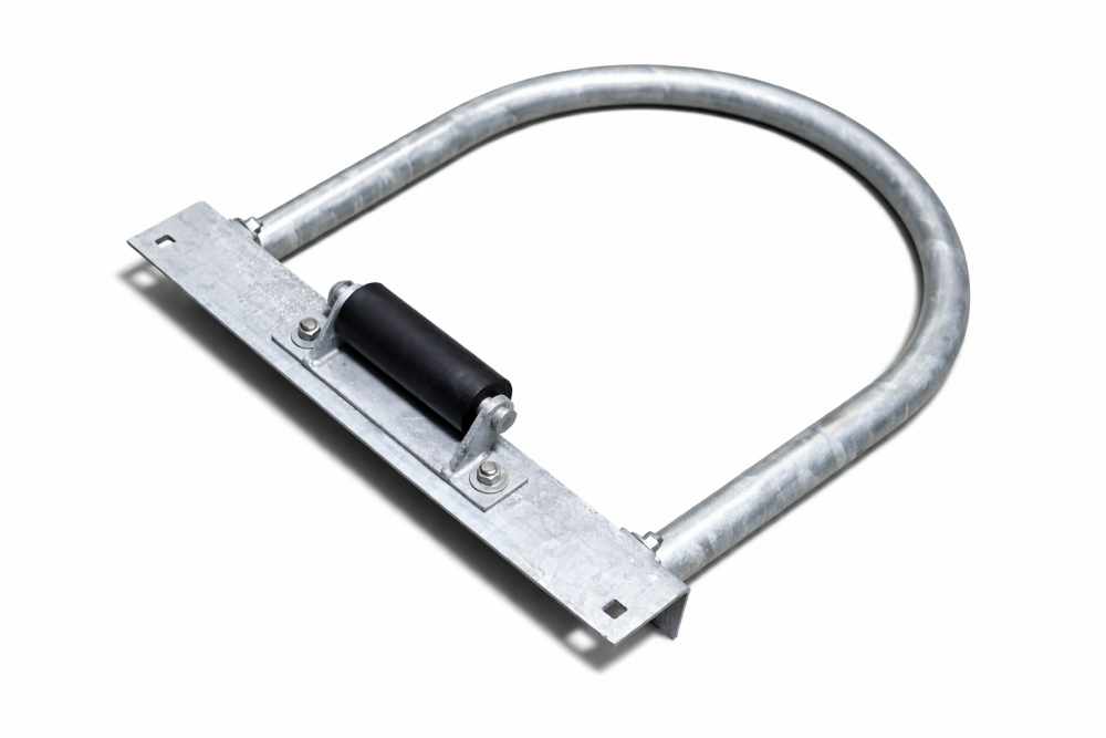 Our convertible Hoop Pile Holders have 3 basic pieces, a dock bracket, a hoop and a roller assembly. This allows you to have a hoop pile holder the way you want it, whether it be a permanent hoop, a removable hoop or a hoop with a roller. All hoops are 1 ½" schedule 40 pipe. The dock brackets are 4" x 6"x ¼" angle. The roller assembly features a 6" solid poly roller and can be bolted to the deck plate or directly to the dock. All steel components are hot dipped galvanized.