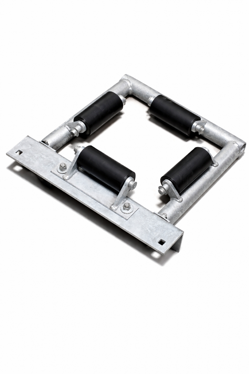 Merco Marine's heavy-duty roller pile holders are made with 1 ½" ID pipe and include 3 - 6" poly rollers, deck plate, and 1 - H-RA roller assembly. Merco offers - custom sizes of these also available - deck plates can be used on the wood dock or truss frames.