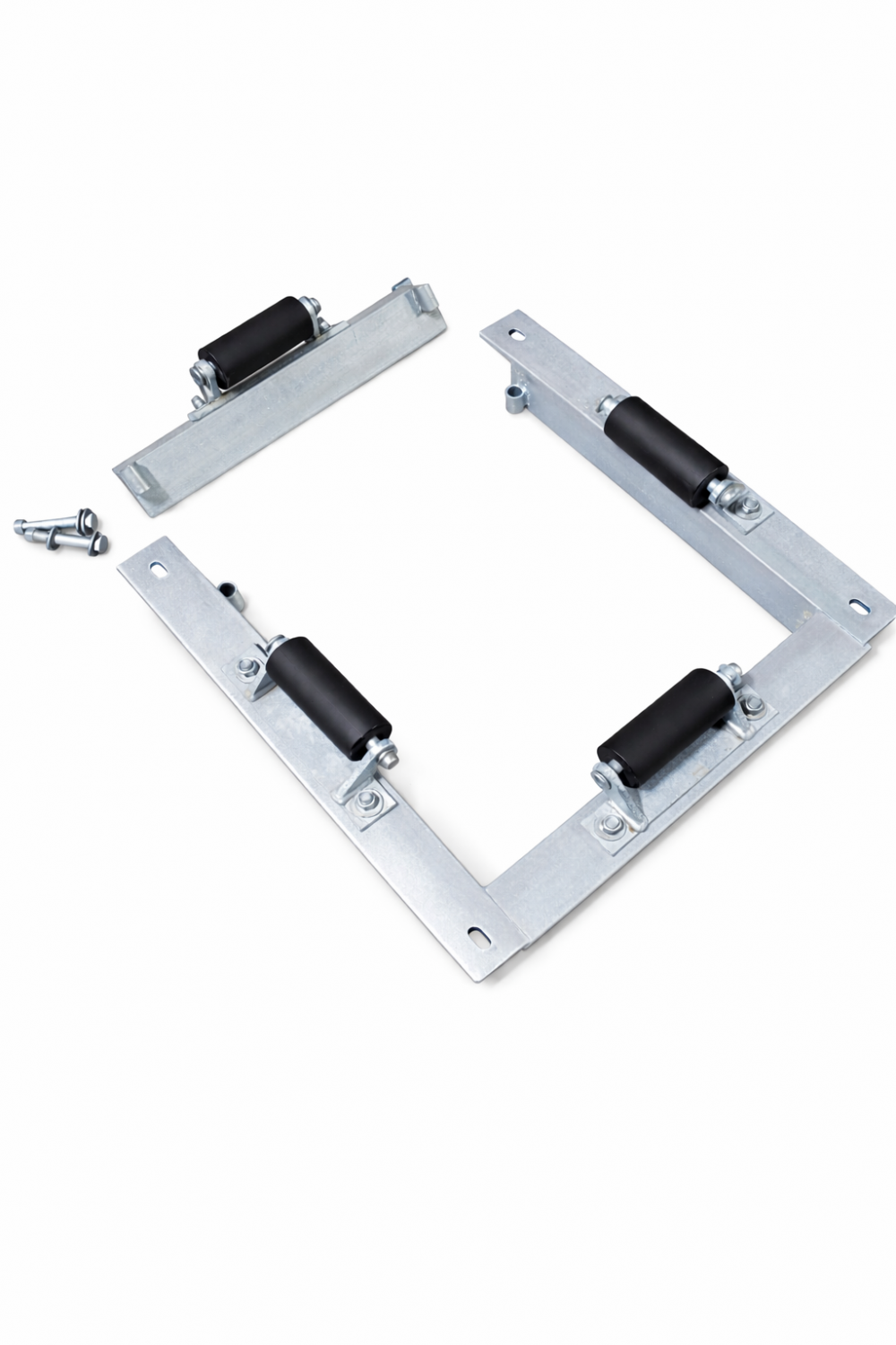 The internal square pile holders are made from 3" x 3" x 1/4" angle and have four 6" rollers included. The pile holder is hot-dipped galvanized after fabrication. We make two versions of this guide which are a solid styleand a removeable side option as seen under related products. The roller assemblies are attached to the bracket with 1-1/2" x 1/2" carriage bolts which allow for easy replacement if needed.