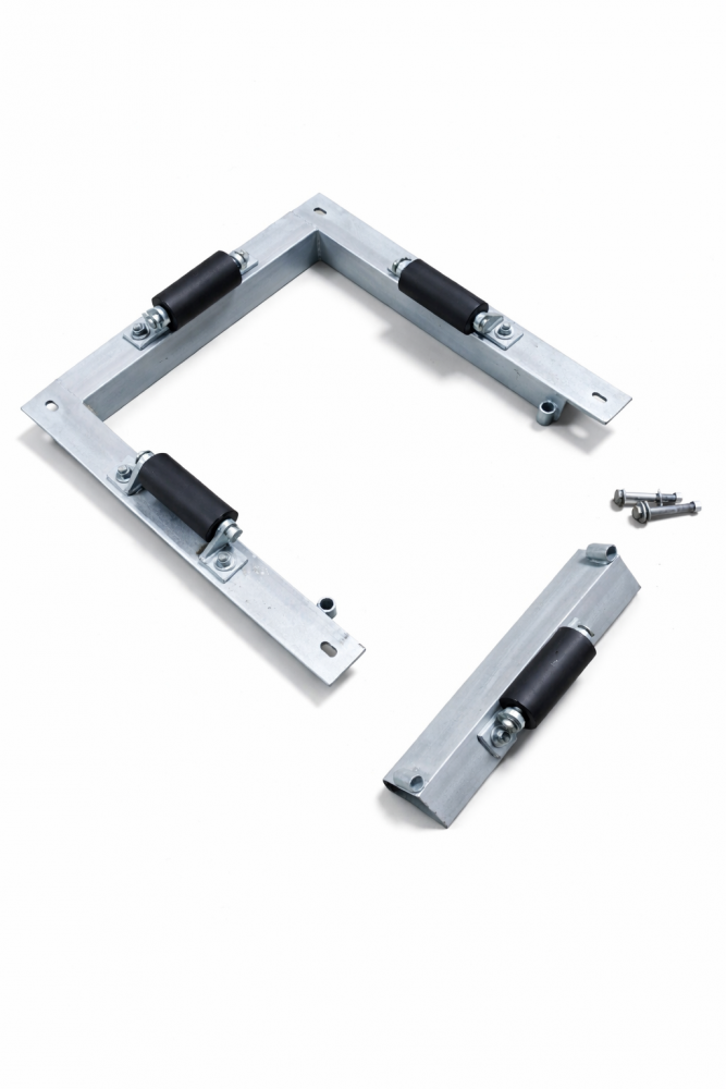 The internal square pile holders are made from 3" x 3" x 1/4" angle and have four 6" rollers included. The pile holder is hot-dipped galvanized after fabrication. We make two versions of this guide which are a solid styleand a removeable side option as seen under related products. The roller assemblies are attached to the bracket with 1-1/2" x 1/2" carriage bolts which allow for easy replacement if needed.